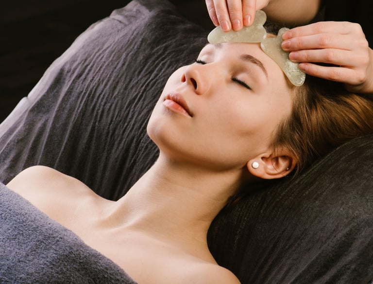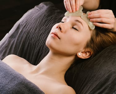 A sculpting facial rooted in ancient technique and modern skin science. The Gua Sha Sculpt Facial uses rhythmic stone massage to stimulate lymphatic drainage, reduce puffiness, and enhance facial contour. Gentle yet effective movements help relieve tension, improve circulation, and support natural lifting while deeply nourishing the skin with botanical hydration.